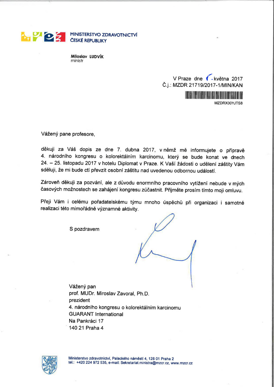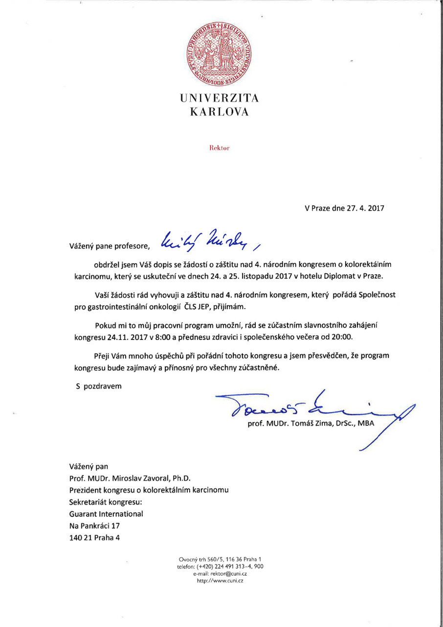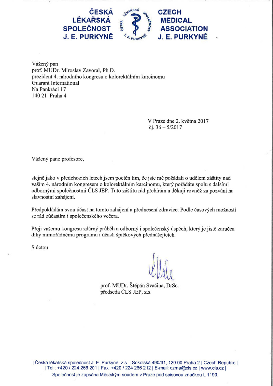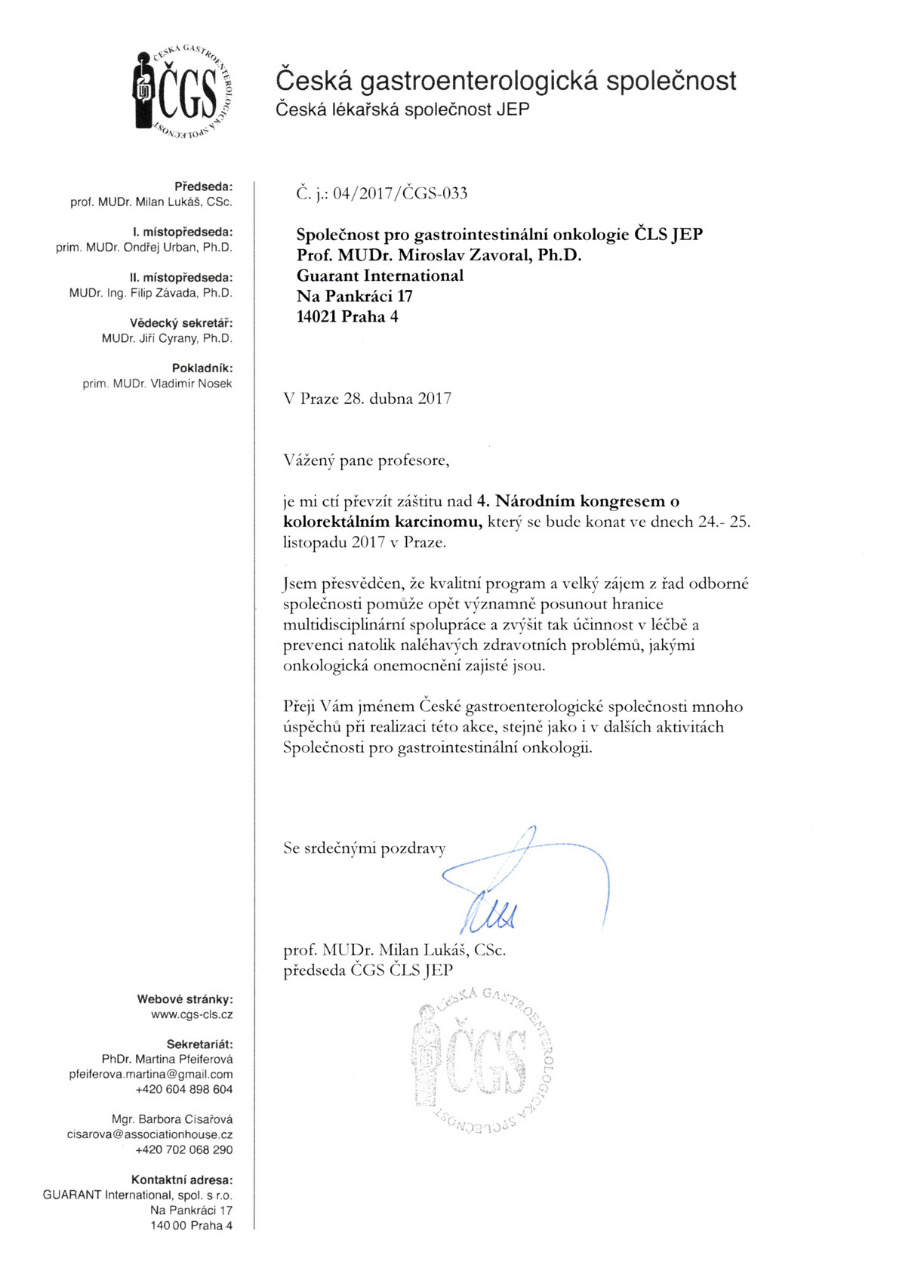 4. národní kongres o kolorektálním karcinomu, Praha 24. a 25. 11. 2017